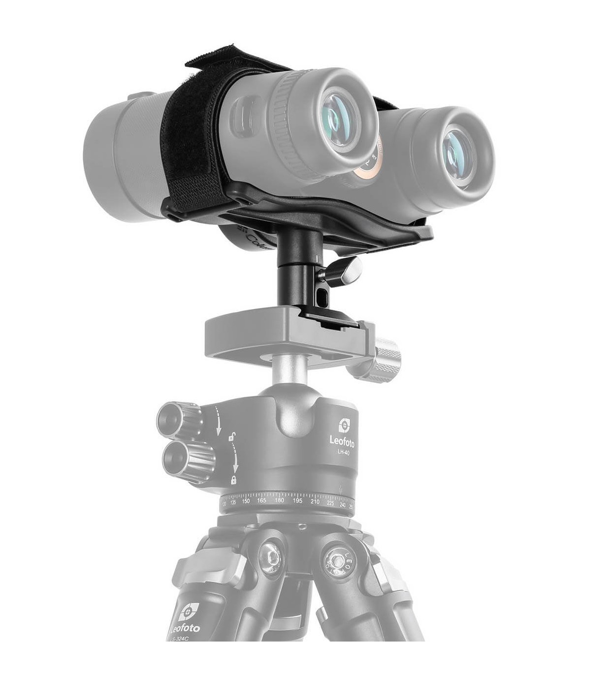 Base soporte para prismáticos Leofoto BC-04 con una correa de nylon de sujecíon con velcro de gran calidad para un soporte firme y adaptable