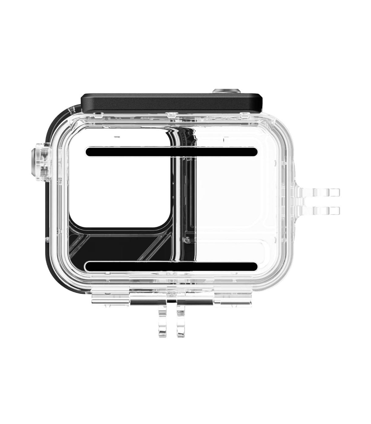 Deux supports intégrés à deux branches vous permettent de monter le boîtier horizontalement ou verticalement sur une perche à selfie ou un autre support de votre choix.